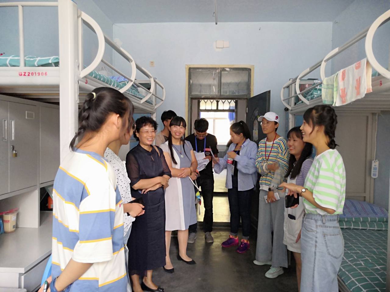 学院领导老师深入南区5号楼的11间男生宿舍和北区3号楼的31间女生宿舍,每到一个宿舍都热心询问同学们的生源情况和对学校环境的感受,和同学们进行交流沟通,听取同学们的意见和建议,并且积极地鼓励大家尽快的适应大学生活,在学习和生活上互帮互助、团结友爱、和谐相处。希望新生们将大学作为一个新的起点,热爱自己的专业,努力学习,同时也叮嘱新生要遵守学校各项规定,最后还对新生提出的相关问题进行了耐心细致的解答。